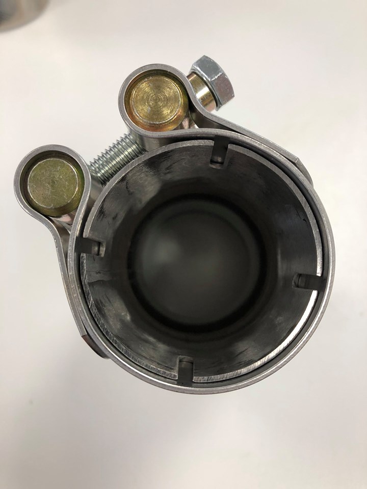 Clamping too far back and not over the slotted area can result in pipe distortion, which may lead to gaps which can not be sealed, in the event of this, silicone exhaust paste will be required to plug the leak.